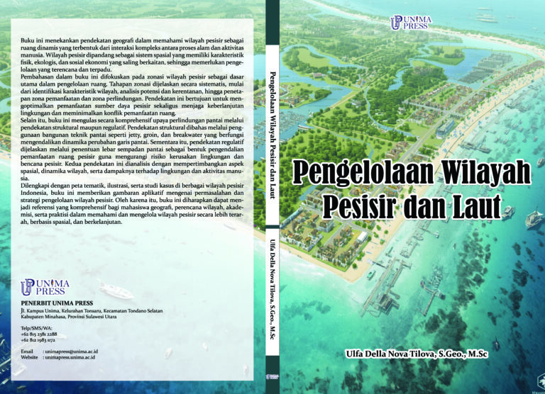 Dilengkapi dengan peta tematik, ilustrasi, serta studi kasus di berbagai wilayah pesisir Indonesia, buku ini memberikan gambaran aplikatif mengenai permasalahan dan strategi pengelolaan wilayah pesisir. Oleh karena itu, buku ini diharapkan dapat menjadi referensi yang komprehensif bagi mahasiswa geografi, perencana wilayah, akademisi, serta praktisi dalam memahami dan mengelola wilayah pesisir secara lebih terarah, berbasis spasial, dan berkelanjutan.